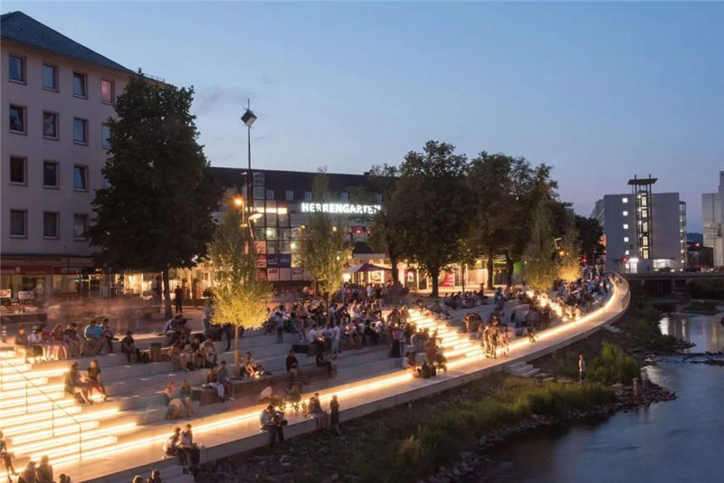 隨著河流的復(fù)興,180米長的新“Siegtreppen”,重新設(shè)計進一步的廣場,長廊和橋梁在附近的勝利贏得了Siegen它的城市中心在河背上。 清晰可讀和慷慨的自由空間結(jié)合了居民對城市生活和“綠色”娛樂的多方面要求,與水元素直接接觸。