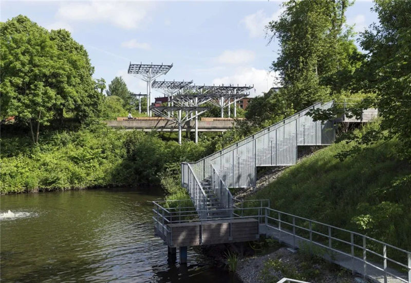項目設(shè)計為居民的娛樂提供了充足的場所,巨大的草坪與瞭望臺也可用于舉辦大型活動。磨坊河公園重新定義了活躍的都市生活,這里已然成為了生活、工作、商業(yè)發(fā)展及經(jīng)濟可持續(xù)發(fā)展的催化劑。