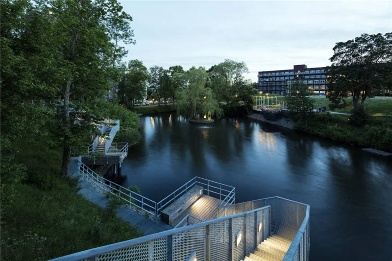 而改造之后的公園則滿布青翠、生機勃勃,使得康涅狄格州的生態(tài)及社會結(jié)構(gòu)得到了優(yōu)化。在與工程師及生物學(xué)家的通力合作下,團隊所設(shè)計出的景觀不但修復(fù)了水陸生環(huán)境,更通過修復(fù)渠道般的河流減少了洪水泛濫,同時也引入了數(shù)百種新型本土植物。